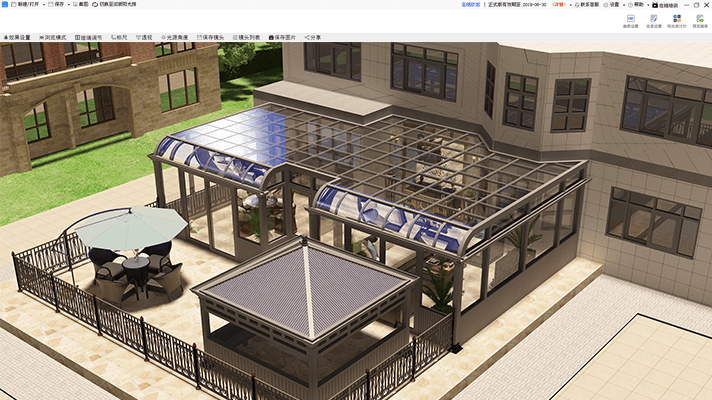 花園式陽光房動態(tài)效果預覽,海報式陽光房效果渲染,立體三維效果預覽